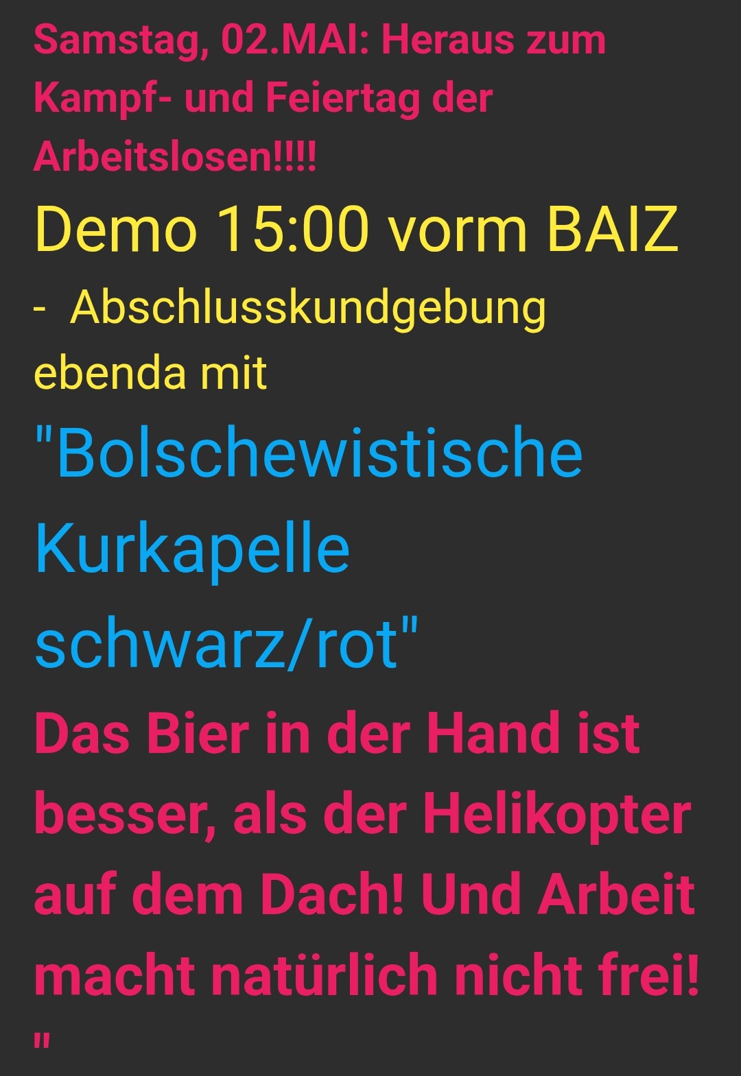 '... Ein Bündnis verschiedener Nichtregierungsorganisationen und sozialer Bewegungen ruft zu Aktionstagen in Berlin Anfang Juni auf. Dort tagen zur Super Return, einer großen Private-Equity-Konferenz, hochrangige Investor*innen, Fondsmanager*innen und Banker*innen, um die Macht und den Reichtum weniger noch weiter zu mehren. ...'