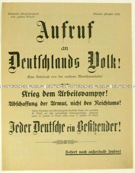'... Jedem Deutschen eine lebenslängliche staatliche Rente von monatlich 80 Mark, als erste notwendigste Lebensgrundlage. ...'